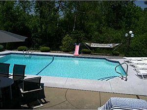 VR pricing. Seller will consider offers between $250,000 and $279,900. Stunning 4/5 bedroom, 2.5 bath colonial in desirable Woodgate subdivision. Featuring 2 story ceramic foyer, formal dining rm, living rm w/fireplace, modern eat in kit w/center island/breakfast bar, pantry, and dinette area leading to fenced yard with gunite IG pool and hot tub! Master bedroom w/bath, AC, security system, finished bsmt. New roof, sump pump w/backup system, hardwood floors in kitchen and mud room, basement with carpet. 2.5 car attached garage.