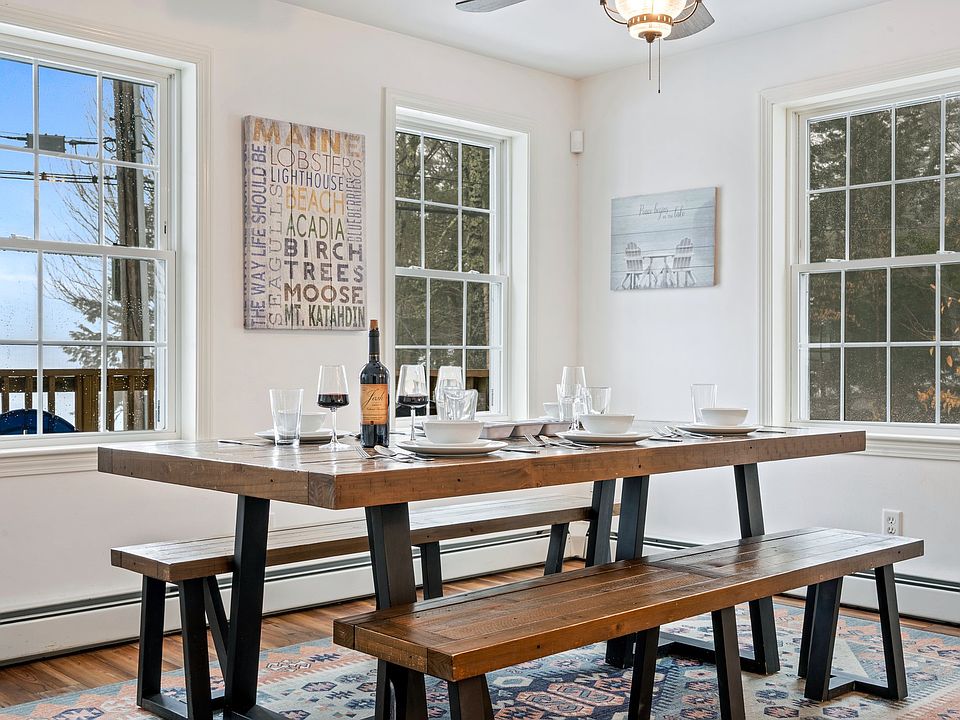 The bright and airy kitchen is fully equipped with all the appliances, utensils and cookware you need to feel at home. This thoughtfully-designed home provides an eat-In kitchen option with the dining seating 6 guests at the gorgeous wooden table.