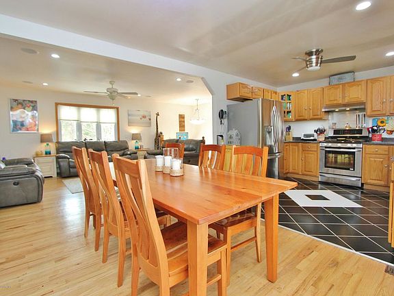 Come see this updated spacious home featuring a possible mother daughter and an amazing bonus room. You will be pleased to find an kitchen with newer appliances, updated bathrooms, all wood floors including under the bedroom carpeting, the lower level has a full kitchen, bedroom, bathroom, family room, office & bonus room with a built in bar. Plus an updated 6 zone furnace, roof & hot water heater, 952 sqft extra high detached garage that is set up electric and loft area which is perfect for a car enthusiasts and contractors. The yard is fully fenced with a covered patio area, brick fireplace, deck. There is also a half bath outside for your entertainment convenience. All of the major components of the home have been upgraded from the roof to the new septic. Don't miss this one!