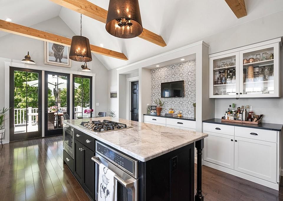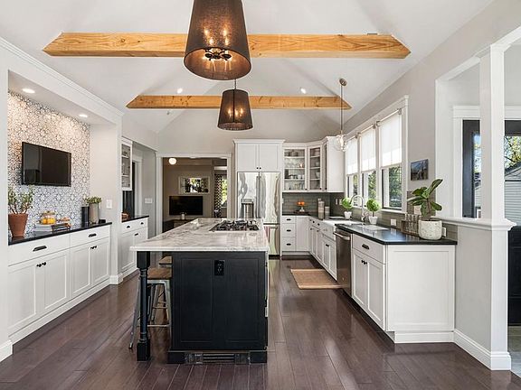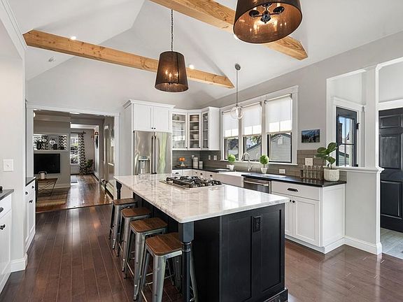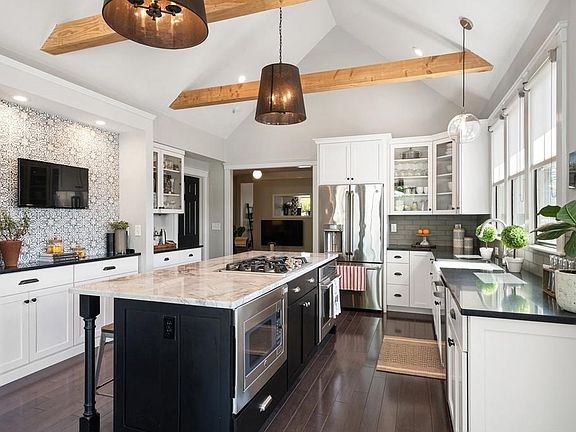- Kit Dscrp: Flooring - Hardwood, Countertops - Stone/Granite/Solid, Deck - Exterior, Ceiling - Cathedral, Flooring - Stone/Ceramic Tile, Kitchen Island, Stainless Steel Appliances, French Doors, Open Floor Plan, Recessed Lighting, Ceiling - Beamed, Exterior Access, Gas Stove, Lighting - Overhead, Closet - Double, Lighting - Sconce