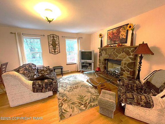 HOME AT LAST! Welcome to your FOREVER HOME! First Time Offered! Here is your perfect opportunity to own this Well Maintained Colonial Home Located in the Heart of the Pocono Mountains and Amenity Filled Towamensing Trails. Features 4 Spacious Bedrooms, 3 Full Baths, Beautiful Hardwood and Tile Flooring Throughout 1st Floor, Living Room with Stone Propane Fireplace, Eat in Kitchen, Dining Room, Primary Suite with 9 X 5 Walk in Cedar Closet. BONUS ROOM on 2nd Floor Perfect for Additional Living Space, Game room, Sauna and Steam Room, 1 Car Garage Converted to Work Shop (Can be converted back to garage). Outside you will enjoy an OVERSIZED Deck, Patio Area, Beautiful Backyard, Rock Wall with Zip Line and 8 X 12 Shed for additional storage. This Is A Must See! Make your appointment TODAY!