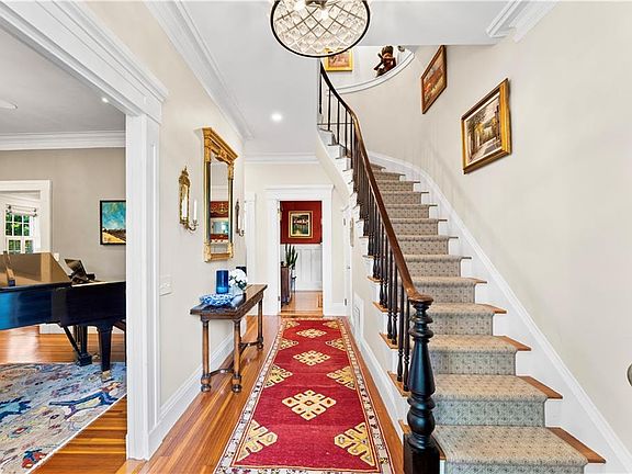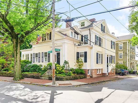 Welcome to the fabulous George F. Gladding House! Perched on one of the most prominent spots in Providence’s coveted College Hill neighborhood, this 1845 Greek Revival has been thoughtfully, and thoroughly, updated with an impeccable eye for detail, with gorgeous crown molding and built-ins, soaring ceilings, and tons of historic details – including 7 working fireplaces. From the main entrance, a stately front hall opens onto a front parlor and a private home office with a half bath. The spaciously redesigned living room, with a gas fireplace, wet bar, and fridge, opens to an elegant dining room. An adjacent sunroom offers a quiet retreat, and steps down onto a private, lusciously landscaped private courtyard patio and garden. The stunning eat-in kitchen features radiant-heated Spanish marble floors, high-end appliances, a breakfast nook, and a dedicated mud room. Upstairs, find two primary suites – the larger offering a fireplace, soaking tub, and radiant heat – plus two additional bedrooms, a family bath, and a laundry room. The third floor includes a private guest suite and additional office space. A new HVAC system with central air, as well as new insulation, adds year-round comfort. Located just around the corner from Prospect Terrace Park, and moments from Brown, RISD, and incredible Downtown and East Side shops and restaurants, this truly special home offers the ideal blend of historic charm and modern luxury living in one of Providence’s most desirable locations.