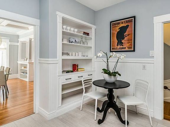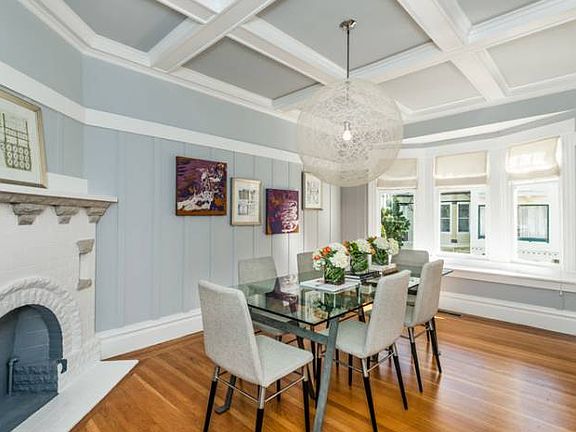 This rarely available condominium is located on a lovely tree lined quiet street in the heart Mission Dolores. This ideal location offers walk out access all to best restaurants and shops that Mission Dolores has to offer, not to mention the convenience of public transportation. This home demonstrates the fusion of the Edwardian craftsman elegance. Original architectural details feature box beam ceilings and built in cabinetry, gorgeous original hardwood floors and wood burning fireplace blended with modern finishes. The attractive flexible open floor plan features 2 bedrooms that open up to a deck overlooking the charming garden. The very large formal dining room leads to the remodeled chef's grade kitchen. Stainless steel Bosch appliances and French door refrigerator compliment the dark chocolate kitchen cabinetry and white granite counter top. A fabulous Design within Reach round light fixture in the center of the dining room compliments the room. Nicely redone split bathroom maintained the classic style with a four legged tub. Generous storage with tandem parking and shared laundry also are included with this lovely home
