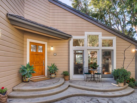 Views, views, views! Situated at the end of a quiet cul de sac down a winding driveway, this magical property provides tranquility amid 1.49 acres of beautiful grounds. The casual sophistication of the d~cor and floor plan is perfect for entertaining! The dining room offers spectacular vistas and the living room features pitched/beamed ceilings, a fireplace, wood floors & French doors opening to a patio. The kitchen has granite counters, sleek SS appliances, a center island w/ wine cooler, & a breakfast bar opening out to the family room. A wide staircase leads you to a huge master featuring a luxurious bathroom with spa tub & big shower, and there's a second upstairs bedroom w/ a balcony and a guest bedroom on the ground level. Designed with an indoor/outdoor feel, glass sliders lead to the exterior where you can enjoy the pool/spa and watch the sunset from the huge deck. There's also a built-in BBQ/fridge, and a flat pad w/ room for a swing set & vegetable garden. $75,000+ spent in recent upgrades! New roof, new porcelain tile flooring, fresh paint & new Nest operated dual zoned HVAC system! This guard gated community offers tennis courts, an exercise room & gym, a private park, trails for hiking or horse riding, and a full service equestrian center.