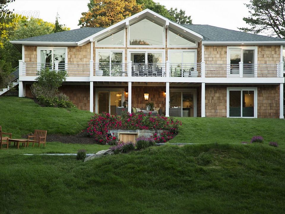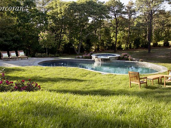 Modern furnishings and complete privacy abound at this bi-level ranch located at the end of a cul-de-sac. Large, picture windows frame both sides of the house for a bright airy feel. This 5 bedroom, three bath overlooks nearly an acre of property filled with lush lawn and mature landscaping. There is 2700 square feet of open plan living space. Upper level consists of living room and dining area that connects to the outdoor deck, overlooking the serene pool and spa. Relax on the front porch by the fire pit and watch the sun set. Located on the this floor is the master bedroom with queen bed, ensuite bathroom and walk-in closet. Two guest beds at the other end of the house, one with a pair of twin beds, the other with full bed or crib (can choose). Lower level has another living space, kitchenette and 2 bedrooms (one with Queen bed + sofabed, other with two Full beds) that share a double vanity bath. This walks out to a covered outdoor seating area plus grill, which leads to a security gated freeform pool and hot tub. Playground at far end of property on wide lawn perfect for sports and entertaining. *Brand new interior photos taken in June.