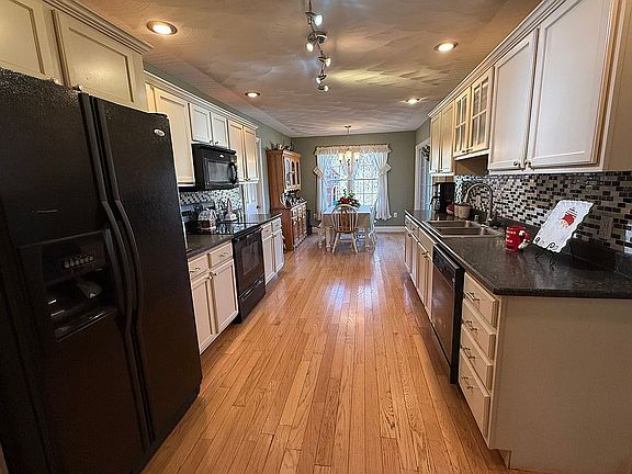 Cozy breakfast nookGallery-style kitchenOpen concept floor planCovered porchDining roomFenced-in backyard