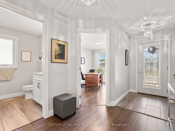 Welcome Home! This stunning brick and stone bungalow has been lovingly cared for and is ready to welcome its new family. Situated in a desirable neighborhood and backing onto a tranquil green space, this property is an ideal choice. The main floor features a spacious open-concept design with a kitchen, dining area, and living room that offers picturesque views of the surrounding trees and easy access to a spacious deck. The primary suite is a serene oasis with double closets and a roomy 4-piece ensuite, while the second bedroom serves as a functional home office with plenty of natural light. Additional features include a 4-piece bathroom, laundry room with garage access, and a beautifully finished basement designed with flexibility in mind. The basement highlights include a large rec room with a stone gas fireplace, hobby room, two spacious bedrooms, utility room, and 4-piece bathroom. Simply move in and make this beautiful home yours! Perfectly located within Town to enjoy all the stores, Presqu'ile Provincial Park, shopping, relaxing cafes, both public and high schools, 2 great grocery stores, sports arena, and many other local atrractions. Minutes to the 401 for anyone needing to commute.