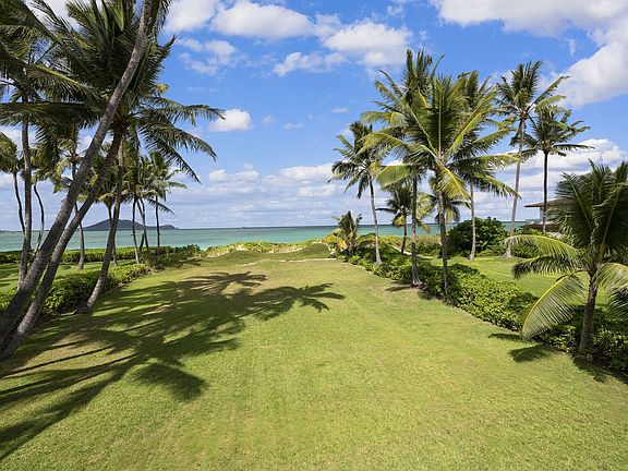 Let the tranquil atmosphere of Kailua Hale Kahakai whisk you away into vacation mode! Located on one of the most beautiful stretches of Kailua Beach, this spacious villa boasts gorgeous ocean views from four of the six bedrooms. This villa also sits on a quiet flag lot, offering true peace and serenity surrounded by palm trees, giving you a lush, tropical feel and the perfect space to enjoy the natural beauty of the island in the enormous beachfront backyard.