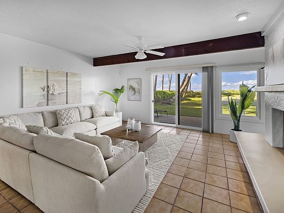 The Main Bedroom Suite on the upper level boasts a comfortable king-size bed, a balcony with full-fledged ocean and Kailua Bay views, a ceiling fan, and a large private ensuite bathroom with a soaking tub and dual vanities. The beach view second bedroom and garden view third guest bedroom are both located on the upper level and furnished with a king bed, ceiling fan, and access to a shared full bath with a soaking tub. Also on the upper level, guest bedroom four has a king bed and guest bedroom five has a queen bed, both with stunning and expansive ocean views. Bedrooms four and five share a full bathroom with a shower/tub combo and single vanity. Guest bedroom six is located on the main level of the villa and offers garden views, a king bed, and a private ensuite bathroom with a walk-in shower and single vanity with ample counter space. There's an additional full bath/ powder room on the ground level of the home as well with a shower for your convenience.