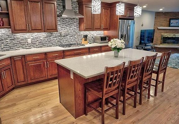 - Kit Dscrp: Flooring - Hardwood, Countertops - Stone/Granite/Solid, Recessed Lighting, Cabinets - Upgraded, Kitchen Island, Open Floor Plan, Main Level, Remodeled, Pot Filler Faucet, Gas Stove