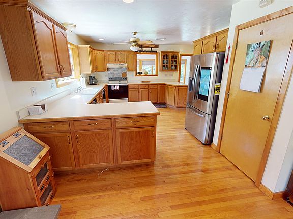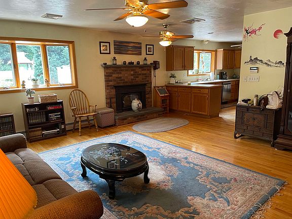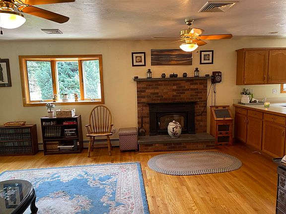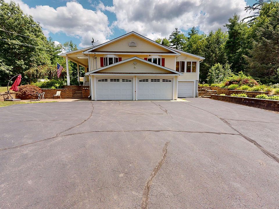 Your next home is waiting for you! This custom ranch home is situated on 4.01 acres! The main level consists of a large open concept livingroom/kitchen with wood stove insert in brick fireplace and hardwood floors. There is a large dining room off the kitchen with lots of windows, vaulted ceiling and skylights leading out to a deck and patio to the back yard and if you work from home, there's even enough room to have a home office in this large open space so you can watch the wildlife as you work! There are 3 generous sized bedrooms with hardwood floors and 2 full baths, one of which is the primary bedroom with a private bath. There is also an enclosed porch off the livingroom with a covered walkway. If you need more space, the lower level is also finished and has direct entry to the oversized 2 car garages under and a 3rd smaller garage-great for storing lawnmower, motorcycle, etc. There is also a detached 20x50 garage with 8x16 bumpout that is heated and will fit even an RV or all of your toys!