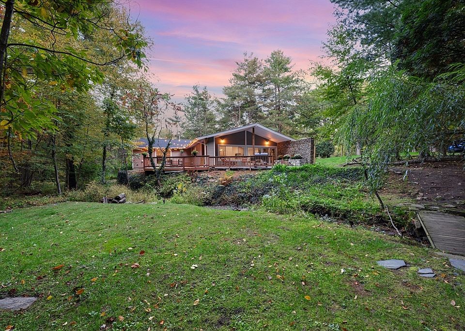 Looking for something extraordinary? This stunning wooded retreat offers a fully remodeled, turnkey Contemporary Ranch w/ 3 bedrooms and 2 baths. Perfectly set in a prime central location near Old Sturbridge Village, this home abuts conservation land and walking trails, creating an ideal backdrop for nature lovers. Enjoy seamless indoor-outdoor living w/ a covered patio and composite deck overlooking a tranquil brook. The open-concept design features vaulted ceilings, recessed lighting, central air, continuous flooring, and a soothing neutral palette throughout. The chef’s kitchen is a showstopper—double waterfall quartz island, stainless appliances, sleek European cabinetry, and a spacious walk-in pantry. The vaulted primary suite boasts a private bath, walk-in closet, and direct deck access. Two additional bedrooms with double closets, a full bath, and a laundry closet complete the thoughtful layout. Pride of ownership shines throughout—this one-of-a-kind home is truly move-in ready