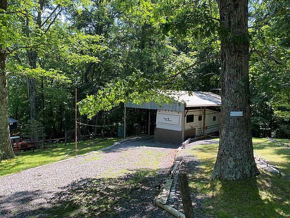If you're looking for an inexpensive getaway spot right off the Blue Ridge Parkway in Carroll County, this lot with a 8'x35' 1983 Royal International Emissary Camper, 2 sheds, and a camper cover with metal roof is the opportunity you've been searching for! The lot comes with water, sewer and power hookup. The camper is mostly furnished. There have been upgrades on the decking, painting, underpinning, flooring, a new water heater, standard sized commode and tub/shower, and larger refrigerator. The current owner did work for water flow diversions to manage the water coming down the slope towards the camper. The yard is shaded by large hardwood trees and the land behind the camper is all wooded for privacy. There is a fire pit and room for outdoor entertainment in the lawn area. There are 2 storage sheds along with a storage area under the camper which is easily accessible from the carport area. There is room to park at least one car under the camper cover.