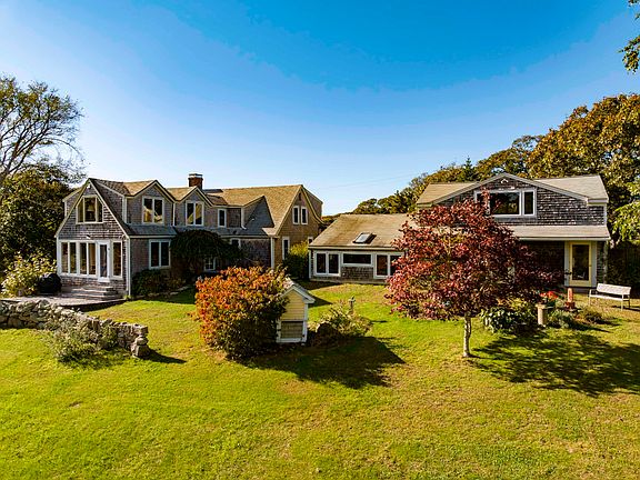 Sunny and bright describes this sweet home settled off of State Road in Chilmark. Well located near Menemsha Pond, the Chilmark Store and the Chilmark Community Center, this is a great home for summer or year-round living. The original house was built in 1856 and has been added onto creating a south facing kitchen and living space with wrap around windows and tons of natural light. Off the living room is a northwest facing, all season, glassed in porch which captures the last rays of the sun. This house has been well loved and well maintained. On site is a heated workshop/studio barn with a large finished private space above. Attached is a double car garage. The property is well landscaped with mature gardens and old stone walls lining the boundaries. Five bedroom septic permit in had for easy expansion of the main house or a detached bedroom in the studio.