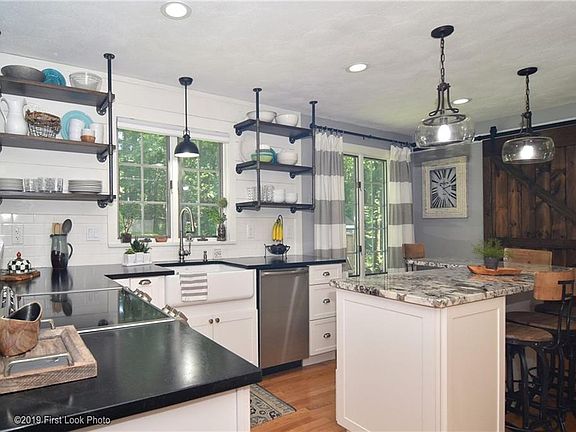 This sprawling executive contemporary Ranch is exquisite from one sun-lit corner to another. The interior design flair in this home is extraordinary. Starting with a designer kitchen completed in 2017, featuring a wonderful mix of soapstone and granite countertops. Industrial pipe shelving beautifully tied in with a farmhouse door, as well as bright white shaker cabinetry, farmhouse sink and stainless appliances, is all framed perfectly with ship-lapped walls and a coffee bar. Take this breezy and peaceful feel all the way to the opposite end of the home, where you'll find a master en-suite boasting a bathroom worthy of it's own accolades, highlighting a custom farmhouse vanity w/ waterfall faucet and vessel sink, a double shower with rock stone floor and beautifully finished with high end fixtures and cedar plank ceiling. A formal living and dining room with rich barn door, don't disappoint with an open flow and fireplace, as well as a family room with it's own fireplace. Steps away, the kitchen makes entertaining easy. Every detail in this home has been attended to beautifully and every space well thought out. The backyard is an entertainers dream with two large decks and a sparkling in-ground pool and sunning space. There are two master suites in this home and the versatility and ease of living is obvious once viewed. One NOT to miss.