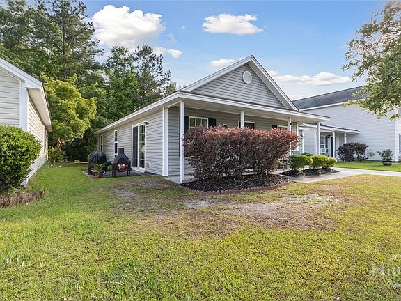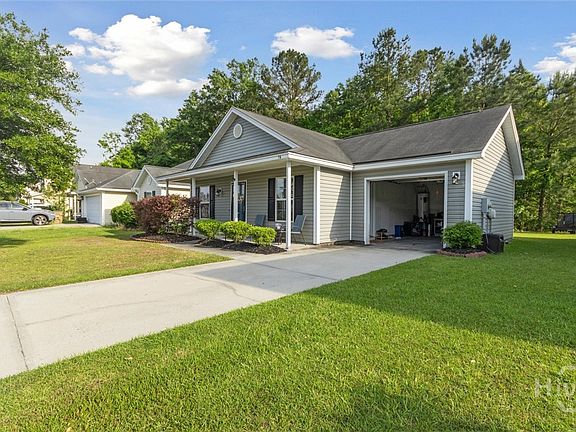 Welcome to your new home! This 3-bedroom, 2-bath gem is full of charm and comfort. Relax on the covered front porch or pull right into your single-car garage. Inside, you’ll love the open layout with the living room, dining area, and kitchen all flowing together under a beautiful, vaulted ceiling—perfect for everyday living and entertaining. The garage opens right into the dining area for convenience, and down the hall you’ll find the laundry closet and all the bedrooms. Step out from the living room to a paved patio where you can enjoy the well-kept lawn, pretty shrubs, and a shady mature tree. Close proximity to I-95 for commutes to Downtown Savannah, GA Ports Authority, Savannah Hilton Head Airport, Gulfstream, SJC Hospital-Pooler Campus, Hyundai and many other places of employment.