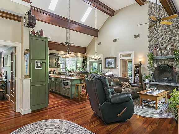 Builder's dream come true! Custom Shingle-style home on 1.5+ acre corner lot is the personal home of one of the North Shore's most accomplished builders. Designed to accommodate varying lifestyles from family living to empty nesters, this 4-bedroom, 5-bath residence has exceptional amenities amidst superb craftsmanship and state-of-the-art systems. The 2-story chef's, eat-in granite kitchen offers custom cabinetry and huge center island is fully open to a spacious great room with a stone-front Rumford fireplace soaring to the cathedral ceiling with mahogany wrapped beams. Brazilian cherry floors accent every room including the 1st-floor master suite with a cove ceiling and en suite bath with a skylight. The finished lower level with a full kitchen, bath, living room and bedroom is ideal guest quarters or in-law/au pair suite. Lush landscaping is the backdrop for a 5-bay garage (2 heated) suitable for boat/antique cars has a half-bath and office. A home for all seasons!