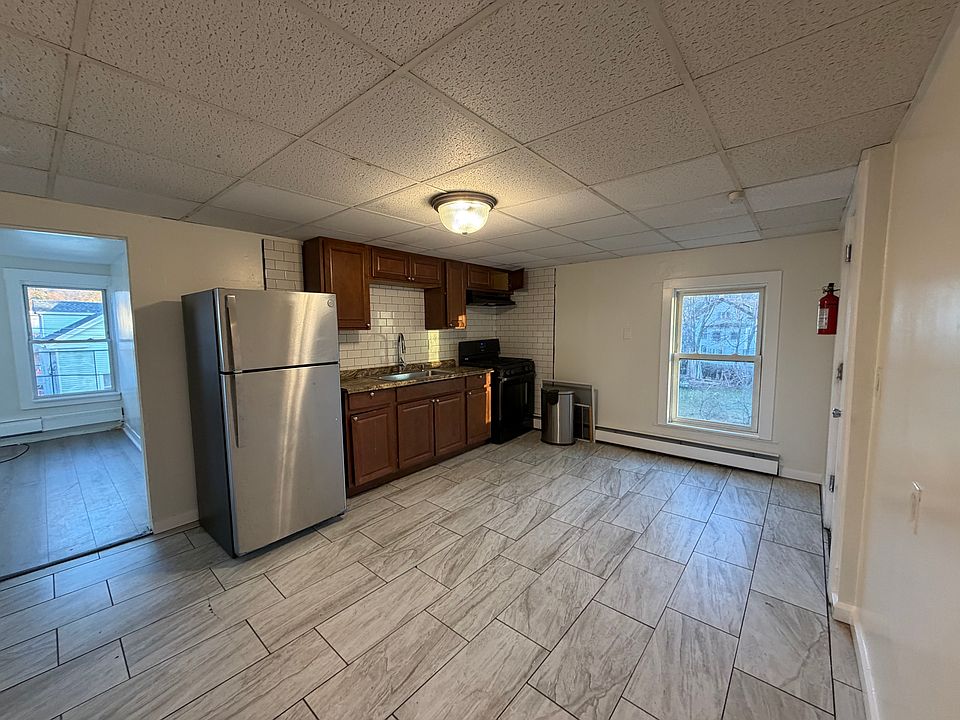This bright, spacious, and move-in ready apartment has been completely renovated, offering a fresh, contemporary feel. The large, eat-in kitchen features handsome wood cabinets, new stainless steel appliances, a stylish subway tile backsplash, and modern grey tile flooring. A massive walk-in pantry provides exceptional storage. Throughout the apartment, you'll find glossy, newly installed wood-look flooring (in rich brown and modern grey tones). The bedrooms are well-lit, and the bathroom is updated with a modern vanity and fixtures. Located in a convenient Meriden location with easy access to amenities and commuter routes.