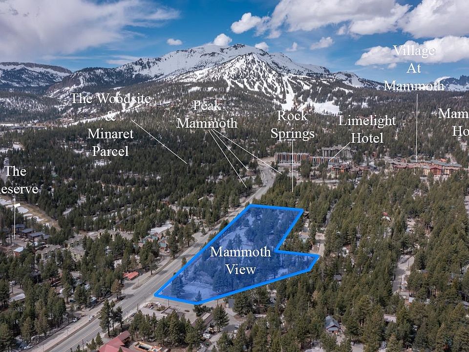 Mammoth View is a prominent assemblage of seven parcels spanning 5.51 acres along Main Street, of which 4.64 acres has been determined developable. Strategically located just east of the Village at Mammoth—a bustling tourist hub known for its high-density hospitality offerings, restaurants, retail shops, and numerous town events—Mammoth View benefits from exceptional visibility and accessibility. What sets Mammoth View apart is its unique position as a midpoint between Mammoth Lakes’ primary commercial districts and the Village at Mammoth. Most of the site is situated atop a bluff, providing unparalleled, panoramic views of the Sherwin Mountains and Mammoth Mountain, making it a truly distinctive development opportunity. Call for a complete Offering Memorandum. The site is zoned Mixed Lodging Residential (MLR) under the Town of Mammoth Lakes’ updated zoning code, permitting a Floor Area Ratio (FAR) of 2.0, which offers significant development potential. Previously improved lot, graded and tiered to capture amazing mountain views