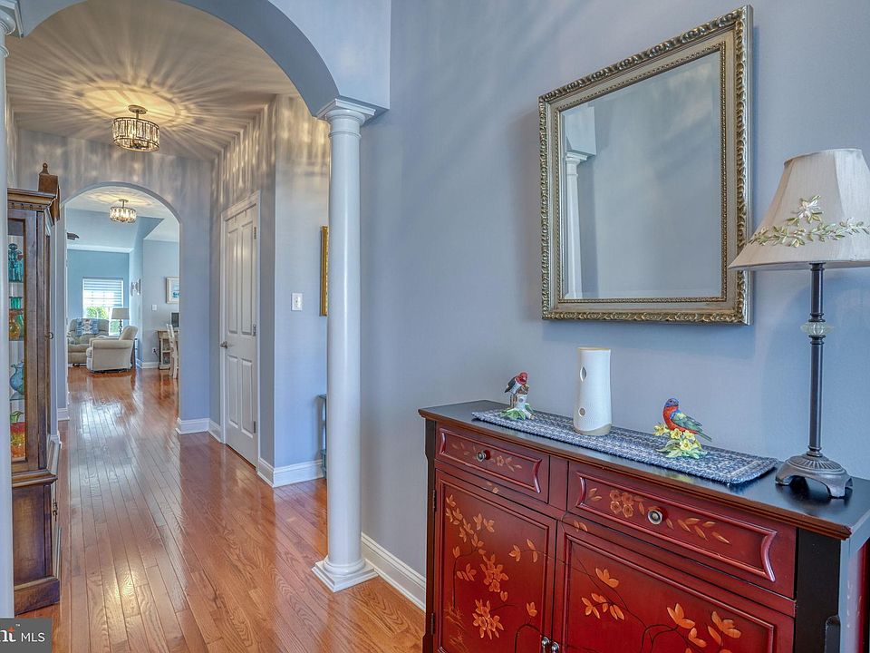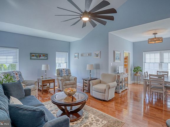 Welcome to the beautiful Village of Eastridge where this 55+ community has all the amenities you'll desire!! This very well maintained Bayard ranch style home features 2 bedroom, 2 baths with ample living space to enjoy quality time with family and friends. A beautiful fiberglass front door w/ leaded glass and matching transom take you inside this home. Now take notice of the stunning solid hardwood flooring, and the eye catching columns. The spacious updated kitchen features quartz countertops w/ ceramic tile backsplash, recessed lighting w/ pendant lights, double bowl basin sink, stainless steel appliances, stunning 42" walnut cabinetry with crown molding and convenient pull-out shelving. Two large pantries allow for additional kitchen storage. The added 4 ft extension, and cathedral ceilings, create a spacious and inviting living room area with ceiling fan creating an open concept for all to enjoy. The dining area leads to a cozy sunroom/sitting room featuring pocket doors and sliders (with shades inside of them) that lead to a 10x16 solid vinyl deck with vinyl railing and privacy trees for added space to enjoy. The primary bedroom features a large walk in closet with added closet organizer. The private bath offers a 5 ft. seated shower with glass doors and comfort height, and double vanity. A second bedroom is located on the other side of this home with access to a full hallway bathroom with tub. The laundry room has a sink and extra shelving for added convenience. If you need storage.... does this home have tons of storage... a five foot crawl space located off the kitchen that is so convenient, clean and organized... This home is a must see....shows like a model home. This home also has a 5 ft. conditioned crawlspace for more storage space, two sump pumps, one of which is water powered, for peace of mind should your electric go out. The HOA fees, include lawn maintenance and snow removal of not just the streets but sidewalks and driveways as well. The "Village of Eastridge" offers 34 acres of open space with walking trails, outdoor picnic areas, bocce ball, shuffleboard courts and a fantastic clubhouse with billiards, exercise room and more! The Village of Eastridge is located a short distance to popular retail stores, downtown Smyrna specialty shops and eateries with easy access to RT's 1 and 13.