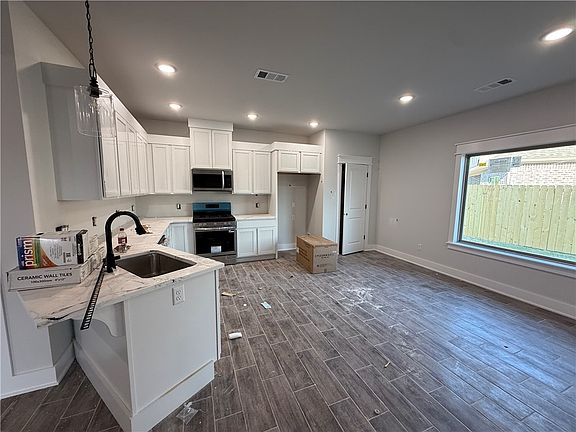 LOCATION, LOCATION, LOCATION! Beautiful new construction in the sought after Summerfield Subdivision. Conveniently located near top-rated schools, restaurants, Creekside Park, and the University of Arkansas. This quality-built, single-level home offers an open layout with a vaulted ceiling and gas-log fireplace. The kitchen features white cabinetry with soft-close doors and drawers, stainless steel appliances including a gas range, and gorgeous granite countertops. The primary suite includes a tiled shower, double-sink vanity, walk-in closet, and linen closet. Energy efficient solar decking in the attic adds value and comfort. Large, fully sodded lot plus builder extras - blinds, gutters, and a full privacy fence are all included.