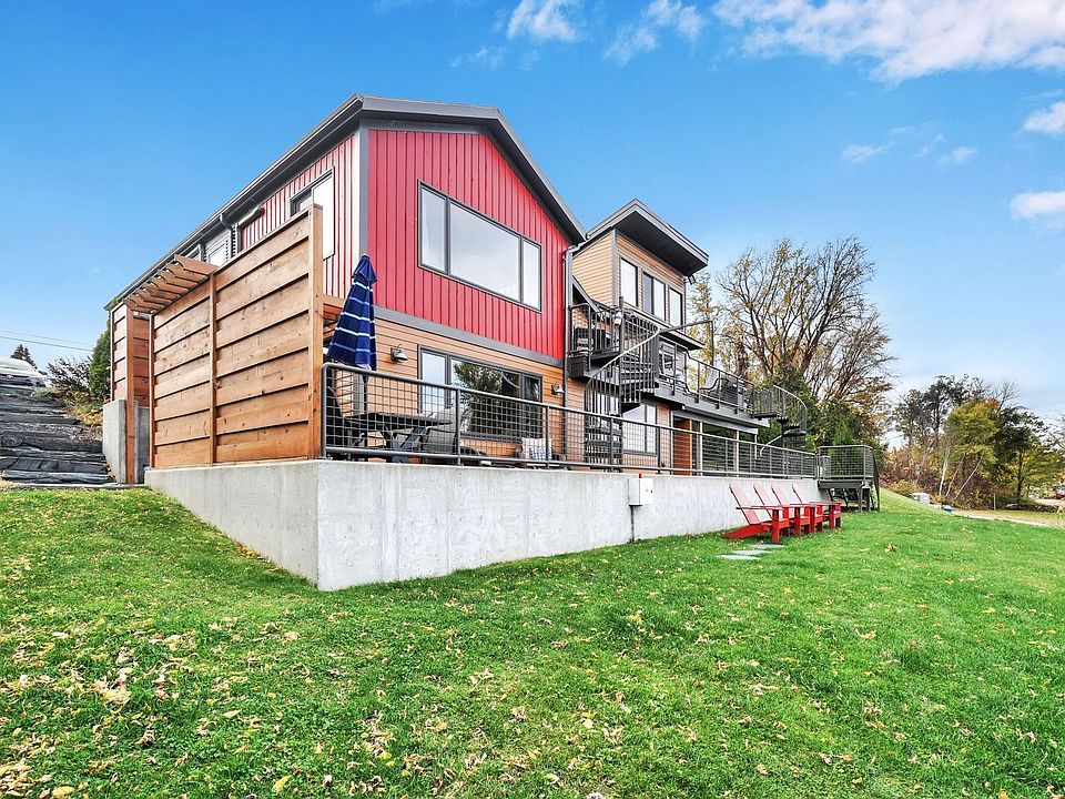 The Champlain Bungalow is a stylish, single-level suite with expansive panoramic windows offering beautiful views of Lake Champlain. Guests have access to a private beach and exclusive use of the Lakeshore Vermont dock.
