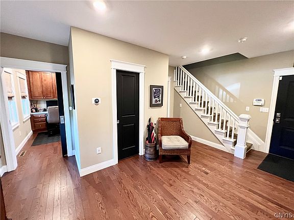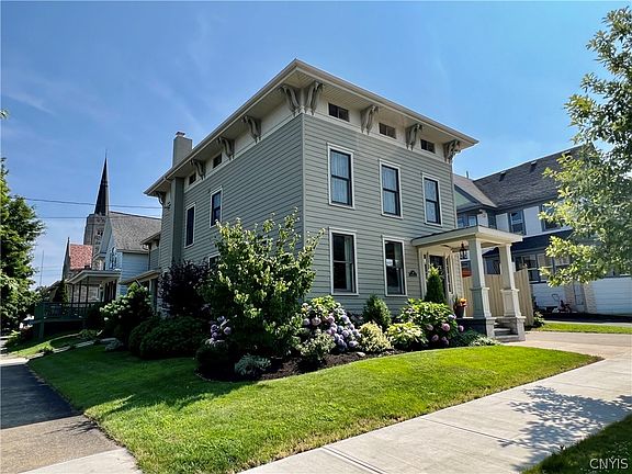 Located just one block to two historic parks, three blocks to Lake Ontario marinas with world-class fishing, and only five walkable blocks to Oswego's downtown restaurants and pubs, this home is a gem. This entire home was completely updated in 2017. It is currently used as a 3-bedroom, 3.5 bath (all ensuites), but the gym could be your fourth bedroom on the second floor. And don't forget the large bonus room in the new attic space with two mini-splits. This home has the best of everything with LP Smartsiding, oak hardwood floors, office built-ins, and Andersen windows. With new plumbing, electrical, sheetrock and HVAC with central A/C, you'll never have a worry. Experience the home's high-end touches such as Kitchen Aid commercial-style appliances, custom California Closets throughout, custom steam shower in the primary ensuite, exterior completely sprayfoamed, built-in Sonos ceiling speakers, WiFi boosters, along with an ADT security system and timed lighting. Here is your opportunity to turn this dream house into your forever home.