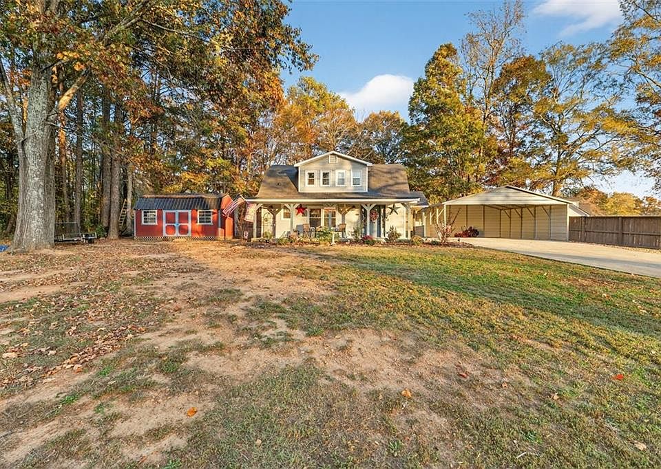Charming Modern Farmhouse with Cottage Character This beautifully updated home blends classic farmhouse warmth with modern comfort. Featuring a welcoming full-width front porch, dormer windows, and clean exterior lines, it captures timeless country charm with contemporary appeal. Fresh siding and trim, a spacious carport, and a rustic barn-style outbuilding complete the picture perfect for those who love a relaxed rural feel with updated touches.