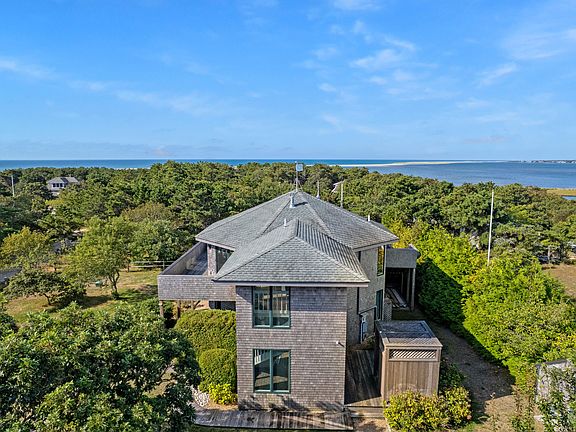 This stunning reverse-contemporary four-bedroom custom home is perfectly situated in one of Chappaquiddick's most sought-after locations. Designed with an expansive open-concept floor plan, the airy and inviting living area flows seamlessly onto a generous wraparound deck, where sweeping, bird's-eye views capture the natural beauty that surrounds you. Thoughtfully renovated, the home blends modern updates with custom finishes to create a rare balance of style, comfort, and year-round functionality an uncommon find in this idyllic setting. Enjoy direct access to Katama Bay, just a three-minute stroll down the road. Its calm waters and sandy shoreline are ideal for swimming, boating, and shellfishing. Nearby, the Wasque Preserve offers over 200 acres. of pristine conservation land, with scenic trails, abundant wildlife, and direct ocean access. Whether you're seeking a serene coastal retreat, a multi-generational family home, or a proven investment property, 76 Washque has it all. With an impressive rental history and bookings during both summer and shoulder seasons, it stands out in today's market. This home is more than just an address -it's the essence of Chappy living.