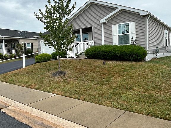 Active Adult community 55+, "Sage" Model expanded. 3 Bedrooms and 2 full baths, 13' laundry room with 3 exits, Synthetic deck with white vinyl post and rail off sliders from kitchen, much sought after open floor plan, large curved kitchen island seats 6, lots of upgrades at time of construction, original owner. a Few of many are Service door off garage, ceiling fans, grab bars, cabinets, roll out shelves in lower kitchen cabinets(where applicable) ,cultured marble in Hall bath, Corian in Kitchen. Club house includes Gym, Game Room, Gathering Room, Kitchen, Baths, Heated outdoor Pool. Resort living everyday. Don't miss out on this one. Lot Lease includes, Club House activities, Grass Cutting, Snow on streets, etc. Trash, More Pictures to follow!! Mail Box in front, not far to walk!!