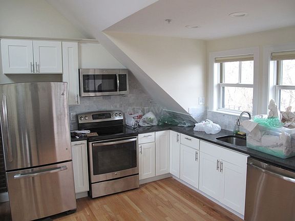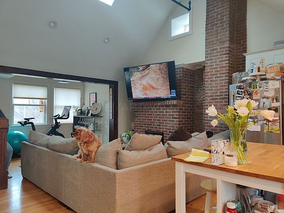 Assembly Row area, 2 bedroom, 1 bathroom apartment. Rent includes municipal water. Key points include an exposed brick, a fireplace, high ceilings, a porch and a skylight. Dogs are allowed. The modern eat-in kitchen includes dishwasher, granite countertops and stainless steel appliances. Has 1 off-street parking space available for an additional fee. Broker fee may apply. Available Now. Reference number SOM-11404