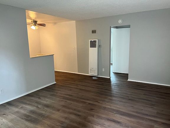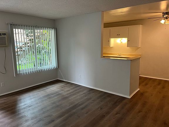 Small garden complex with updated downstairs unit with wood flooring, fresh paint & open floor plan. Unit comes with range/oven, wall A/C, 1 carport spot. Complex has a pool and laundry facilities. Water & Trash are paid by owner.