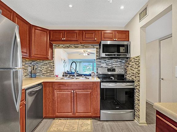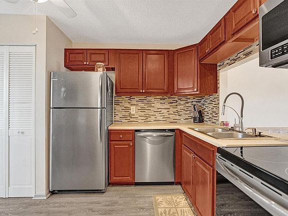 Experience one of the most desirable lakefront settings in Woodlake Villas with this bright, beautifully updated 2-bedroom, 2-bath corner townhome. Framed by tranquil water views from every window, this private corner residence offers a peaceful retreat with a true lakeside feel. The home features impact windows and a newer AC system, blending comfort, security, and peace of mind. Includes two assigned parking spaces and offers easy access to shopping, dining, and major highways perfectly combining serenity and convenience.