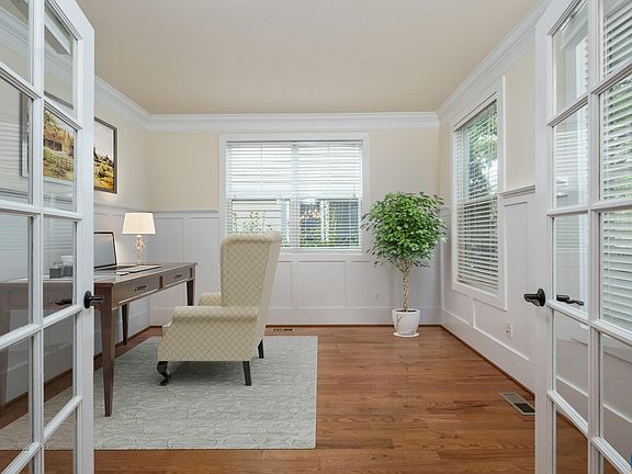 Stunning 4BR/3.5BA Craftsman blends luxury, comfort, and function in a highly sought-after location with multigenerational appeal. Enjoy relaxing mornings on the covered porch or entertain guests on the private rear patio with a stone fireplace. Inside, discover high-end finishes including hardwood floors, custom trim, and a two-sided fireplace connecting the spacious living room and light-filled sunroom; convertible to a screened porch. The chef’s kitchen is a dream with granite counters, premium stainless appliances, gas range, and furniture-grade cabinetry. Main level features 9’ ceilings, formal dining, breakfast nook, and a private office. The owner’s suite offers a serene retreat with an adjoining sitting room, large walk-in closets, and a newly remodeled spa-like bath with tiled shower and free standing tub. Downstairs, the finished terrace level includes a full kitchen, bedroom, bath, family room, and fitness space; ideal for in-laws or rental. Energy-efficient design with tankless water heater. Detached garage, extensive tile work, and access to community trails complete the package! The Belvedere is filled with sidewalks and parks to enjoy. The HOA includes Ting Fiber Internet!