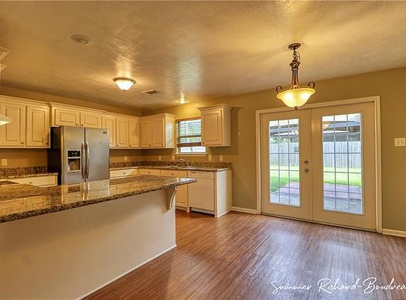 Adorable 3 bedroom 2 bath split floor plan home in Moss Bluff. Granite and wood laminate flooring throughout. Stainless steel refrigerator, eat in bar and separate dining space off kitchen. Beautiful tray ceilings in living and master bedroom. Master suite boasts dual vanities, large soaking tub and separate shower. Rooms are nice sized and home has an abundance of storage space. Newly fenced backyard is perfect for outdoor living and entertaining. Quite street yet close to shopping and restaurants. Flood Zone X. All measurements are more or less.