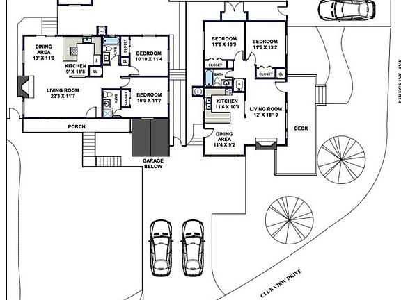 PRIME LOCATION. Incredible income property - TWO Stand Alone 2 Bedroom Single Family Homes in Moonridge for ONE price: 362K each. Large 9K SQFT triangle corner lot across the street from BIG BEAR ALPINE ZOO + BEAR MOUNTAIN GOLF COURSE, and MOONRIDGE COFFEE COMPANY. Walking distance to BEAR MOUNTAIN, BIG BEAR RESORT (one mile); VONS, DIY HOME CENTER + STATER BROS MARKET (five minute drive). Each home has their own address: House #1 at 760 Club View Drive: 2B | 2B 1,008 SQFT with 1 car garage. Updates: new front stairs + front porch/deck, updated kitchen: brand new fridge, custom butcher block countertop + tiles, updated bath, new overhead lighting, wood burning fireplace insert + shed in back. House #2 at 42775 Peregrine Avenue: 2B | 1B 950 SQFT with wood burning fireplace insert. House #1 is tenant occupied (or delivered vacant); House #2 is ready to live in or lease short/long term! Fun Fact: Club View Drive is the FIRST road plowed in all of Big Bear! Easy to show.