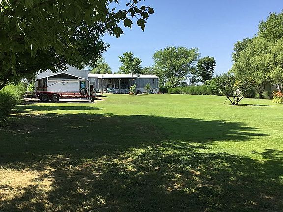 Out home for the past 19 years, this 1998 Redman 16'x72' single wide trailer is in great condition. Tons of extras (remodeled bathrooms, new carpet, smokefree); Master bath has a walk-in shower, large utility cabinet, 60" single sink vanity, separate toilet room, 2nd bath is a full bath, the living room has new carpet, eat-in kitchen, natural gas range, side by side fridge, laundry room comes with washer and dryer. Covered front and back porch with deck. The entire back patio is covered. Central heat (natural gas) and air. City water and septic tank. Home is not on a solid foundation, has factory tie-down straps, trailer axles, and tongue included. Lot size 110' wide x 350' deep. 24' x 24' double car garage on a concrete slab. 18' x 20' enclosed carport with garage door on the backside of garage. 10' x 13' sears metal storage building on the back corner of the property. 6+ person storm shield tornado shelter installed by Hyslop Excavating. 3 x 45' long rows of tame thornless blackberries. 30' long row of muscadine grapes