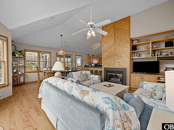 Price Reduction! Wonderful opportunity in this Corolla Oceanside community of Crown Point!This reverse floor plan home offers an open top level with a large kitchen with granite counters, nice living and dining areas with vaulted ceilings and multiple accesses to the top floor deck and screened porch. LVT flooring throughout the top level offers a smooth flow and hosts an ensuite bedroom in addition to a half bathroom. The mid level includes another full ensuite bedroom with private deck access, 2 more large bedrooms with a connected full bathroom, and the laundry area. The ground floor offers a large sitting area and game room, another half bathroom and storage closets. New stove replaced in 2022, new top level HVAC unit replaced in 2023. The very top level deck offers an astounding 360 degree panoramic view of Corolla. An easy walk to the community beach access, and the beautiful community swimming pool and tennis court! Crown Point is conveniently located to the wonderful shops and restaurants of TimBuck