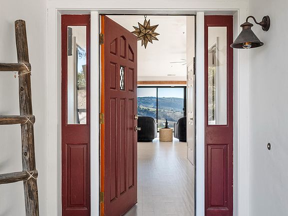 Soar with the hawks and watch the deer roam across your hillside from this peaceful 20-acre sanctuary in the gated Jonata Springs Ranch. Surrounded by breathtaking mountain and valley views, this tranquil retreat offers a rare blend of natural beauty, privacy, and access to over 10 miles of deeded equestrian trails.Bathed in natural light, the home's open great-room design creates a seamless flow to the expansive patio--perfect for morning coffee, sunset gatherings, or simply breathing in the stillness of the valley. The renovated kitchen features custom Mexican tilework, upgraded appliances, and classic Saltillo tile floors that add warmth and charm. Two ensuite bedrooms offer comfort and privacy, while a third room - used as an office--has a private entrance ideal for creative work or flexible livingThe home includes owned solar panels with battery back up for energy efficiency and sustainability, plus ample space to add a barn, ADU, or pool. Set along private Falcon Ridge Lane and supported by one of the Santa Ynez Valley's most reliable private water companies, this property is a perfect pied-a-terre, tranquil country retreat, or full-time sanctuary surrounded by nature and wildlife--a place to slow down, reconnect with nature, and find your inner calm. For additional Jonata Springs Ranch information visit jonatasprings.org