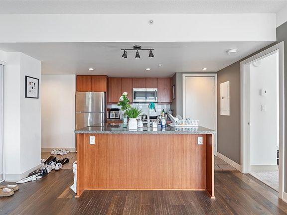 Welcome to the Juliet where modern sophistication meets downtown living! This premier floor plan boasts an architectural showpiece: a dramatic 25-foot curved wall of floor-to-ceiling windows that floods the home with natural light and showcases breathtaking city views. Inside, you’ll find high-end finishings throughout, including granite countertops, bamboo flooring, and in-suite laundry for convenience. The open-concept layout creates a seamless flow between kitchen, dining, and living spaces, perfect for entertaining or relaxing in style. When you need a retreat, head up to the exclusive rooftop Zen garden, a serene oasis offering panoramic city, mountain, and ocean vistas.