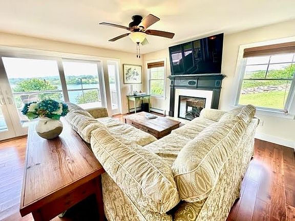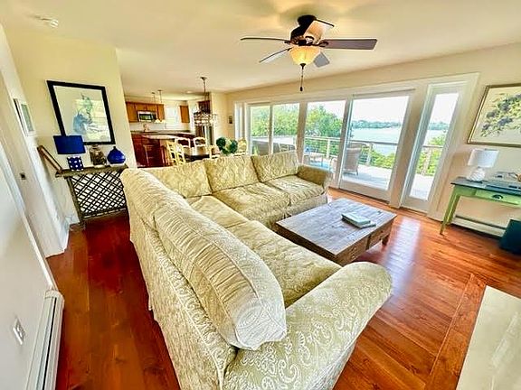 760 Lakeside Drive: Pretty as a picture! “Lakeside” is a lovely 3+ bedroom, 3.5 bath home with plenty of charm to go along with modern and appealing construction. This 2 story classic style home sits along the sparking shores of Fresh Pond. Enter main floor to a large open floor plan kitchen, living and dining room, fully taking advantage of uninterrupted Lake views through large wall of sliders. Enjoy alfresco dining and relaxing overlooking the Lake from west facing deck. A convenient first floor main bedroom with ensuite bath, plenty of storage, plus a half bath complete this level. Up to second floor with 2 bedrooms, each with full bath, and a thoughtful den/study, and handy laundry room complete this floor. Basement has plenty of storage and exits at grade towards Lake, convenient for all your water sport toy storage. Basement includes 1 car garage. Lot abuts conservation lands and is one of the few homes located on Fresh Pond with clear and direct access to the pond, where you can enjoy all water activities which include swimming, kayaking, canoeing and fishing. Close to Fresh Pond Greenway trails that connect you to all Block Island’s wonderful walking trails. All ready for your family to truly enjoy one of Block Island’s greatest assets in your back yard!
