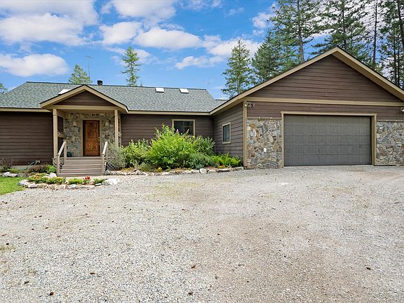 Enjoy privacy while overlooking a backdrop of mountains and trees only 12 miles from all the amenities of Kalispell. This home offers a rustic backdrop with tons of character including multiple built-ins, main level master bedroom with access to a covered deck. The master bath features reclaimed wood accents, new marble countertops, dual sinks and tiled steam shower. Enter through the Blue pine custom front door to an inviting living area with a real rock wood burning fireplace, rough sewn flooring, a cooks delight kitchen including GE profile convection oven, 5 burner gas cooktop, concrete overlay countertops, Whirlpool stainless appliance and three pantries located off the service room. You will enjoy the Knotty alder cabinetry giving this home a warm and inviting Montana feel. The wrap around deck will be great for barbeques or just enjoying those great sunsets. There is a fenced dog run for your pets and an 800 SF attached/heated garage with plenty of storage. A must see. See feature sheet under documents