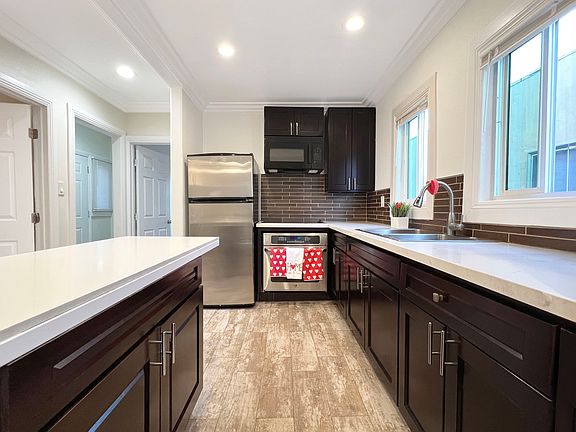 Welcome to **762 Orange Ave Long Beach where you will find a spacious upstairs 2 bedroom 2 bath apartment conveniently located near the 91 freeway and less than 5 miles from the beach. This unit features granite countertops, stainless steel fridge, electric stove, and a microwave for all your cooking needs. Enjoy the comfort of ceiling fans, recessed lighting, and vinyl flooring throughout. The tiled shower adds a touch of luxury to the bathrooms. With an on-site laundry facility, you can easily take care of your laundry needs. This apartment is freshly painted and cleaned, ready for you to move in. Located less than 1 mile from Alamitos Beach, you can enjoy the sun and sand just a short distance away. VOUCHERS WELCOMED. Additionally, this unit is near the 710 freeway, 3 miles from Cal State Long Beach University, and within 1 mile of Lincoln Elementary School and Saint Anthony High School. A garage is available for an additional $100. Don't miss out on this fantastic opportunity to live in a prime location in Long Beach! Deposit varies upon approved fico. 1 year