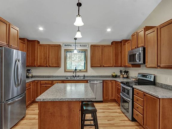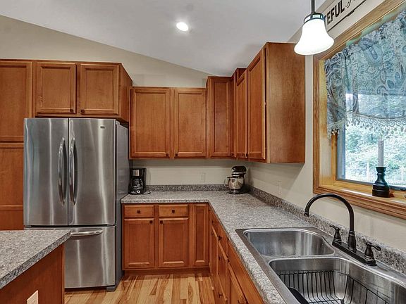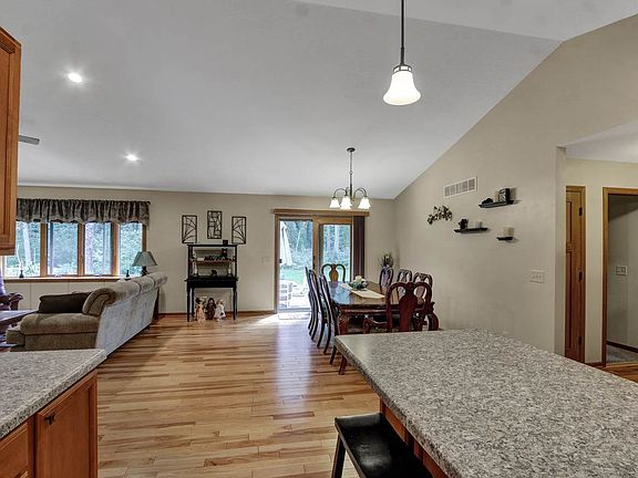 Reward yourself with this 4 bedroom 3 bath home newly built in 2012. Secluded on 3 acres of woodland where you are surrounded by mature trees and the sights and sounds of nature throughout the year. From the unique brick walkway to the front door entrance, you'll be greeted by the spacious open concept and vaulted ceilings and windows galore. Keep things neat and tidy in this dream kitchen as it offers you a center island, tons of cupboards and counter space along with stainless steel appliances. Entertaining is a breeze, whether standing at the center island enjoying a snack or eating fine cuisine at the dining room table while engaging in quaint conversations from the living room, everyone will feel right at home no matter what the occasion. The master bedroom boasts a private bath with double sinks and walk-in closet, 2 more additional bedrooms and a half bath with a laundry facility all included on the main floor. Open stairwell to the lower level where movie night is a must in your very own private theater! Be sure to bring a hot buttery bowl of fresh popped corn and your favorite slippers. If reading a good book while sipping a glass of wine interests you then you'll want to cozy up by the floor to ceiling stone fireplace as the chilly evenings are around the corner. An additional bedroom in the lower level with an egress window and full bath makes a great guest room for family and friends. Let's not forget an added bonus to this beautiful property, the 28 x 28 detached garage for all your toys and overflow storage. No more daydreaming about the perfect home as this property really is a dream come true!