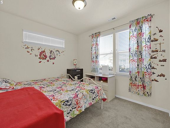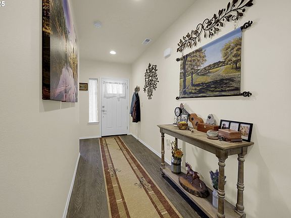 Built in 2022, this single-level 3 bed/2 bath home in the Woodland Ridge Community is the largest one-story home in the neighborhood! Upon arrival, you will notice a 12' x 20' gated concrete pad that can store an RV, boat, extra vehicles or toys. The hallway entry leads up to a spacious great room with laminate flooring, vaulted ceilings and a cozy gas-burning fireplace. The kitchen boasts stainless steel appliances, an island, walk-in pantry, and a 2' x 5' wine bar with built-in wine fridge. The dedicated dining nook flows right off the kitchen and has ample space for a large table. The primary bedroom has a spacious ensuite with double sinks, soaking tub, freestanding shower and walk-in closet. There are two additional guest bedrooms separated by a guest bathroom, and an added den that serves as the perfect flex space. Through the laundry room you'll find an extra deep 2-car garage, great for parking, working, storage and more. Step into the nicely landscaped backyard with a brand-new back deck and enjoy the sunshine of Oregon summers or keep dry from the rain under the covered patio and let the home's French drains do their work. Come see all this wonderful property has to offer, call now to schedule your tour today!