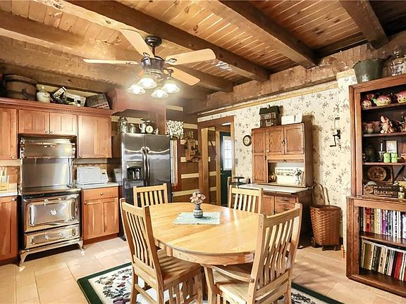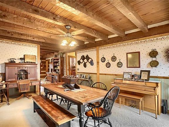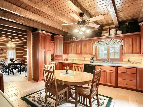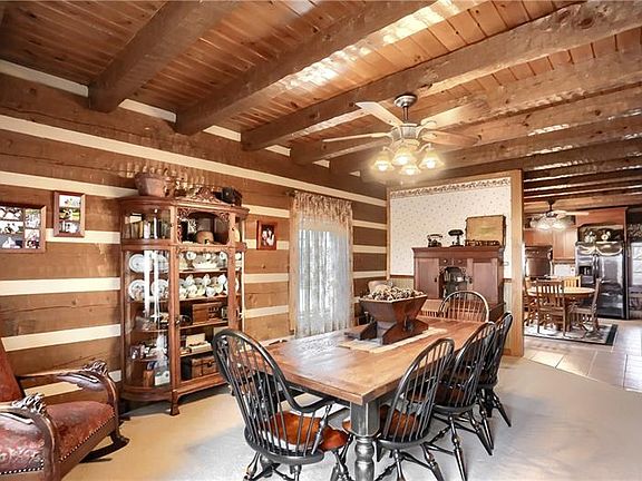 2004 Stonemill Traditional Dove-Tailed Chinked Square Log, Appalachian Style, Handhewn 5 bedroom, 3 Full Bath, 1 Partial Bath, 4,000 Square Foot Home, overlooking 10 Acres, OGMs convey. Western Red Cedar Logs Expansive Kitchen, Engineered Stone Countertops, Shreck Custom Cabinetry, Inlaid Pattern Ceramic Tiles, Handhewn Log Beam Ceilings, Heartland Stove. Full plank 1.5' width Carlisle Hardwood floors of Vermont, w/ old fashioned log nails. Granite Inlay Hearths on 2 Cast Iron Gas Fireplaces, Main Floor Master Bedroom, w/ 9??? ceilings, ceiling fans throughout. Master Steam Shower. Artisan Custom ???NatureRails??? railing leading to upstairs foyer with a real copper ceiling. "1st floor"can be converted to full length In-Law Suite w/a stamped concrete front porch private entrance. 1st floor Baseboard boiler heat, 2nd floor radiant heat, 3rd floor gas forced heat/air. Kinetico Water System. 3 Pastures, 2 Run-thrus. 1st floor 8' ceiling, 2nd floor 9' ceilings. 3rd floor are 8.5'