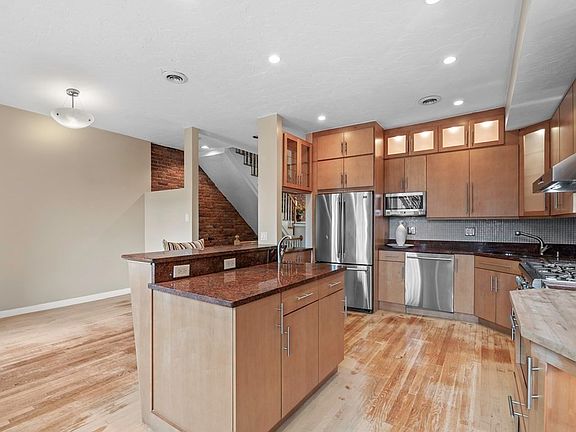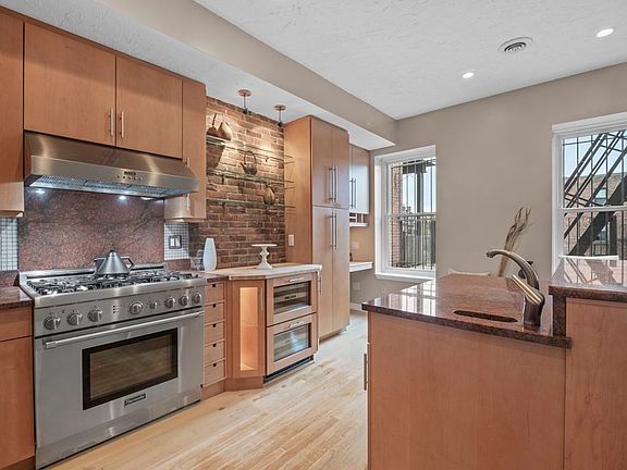 Be dazzled by light and sunshine in this beautiful two bedroom/2.5 bathroom penthouse condominium! Enjoy the vibrancy and electricity of the South End and the proximity to Symphony Hall, Green and Orange Line, Whole Foods, and 93. Savor nearby restaurants such as SRV, 5 Horses Tavern and Flour Bakery, and stroll through nearby Blackstone Sq or Titus Sparrow Park. This oversized duplex is loft like in feel with big open spaces, ideal for entertaining. The chef's kitchen boasts a Thermador oven, custom cabinetry, and granite counters, complete with a granite island for casual eating. The South facing deck is ideal for relaxing at any time of the day. The living room is quite accommodating, with a brick fireplace mantel which adds charm and warmth. The upper level holds generous bedrooms, each with abundant closets, and both with bathrooms ensuite. One parking spot(tandem) rounds out this offering. Self managed, pet friendly, in unit laundry and central air conditioning. An autumn gem!
