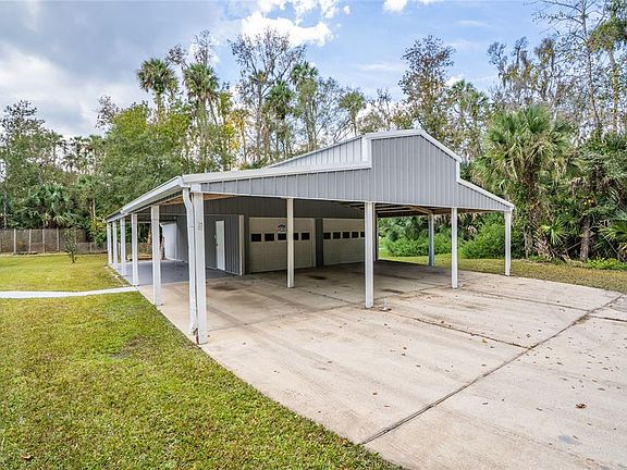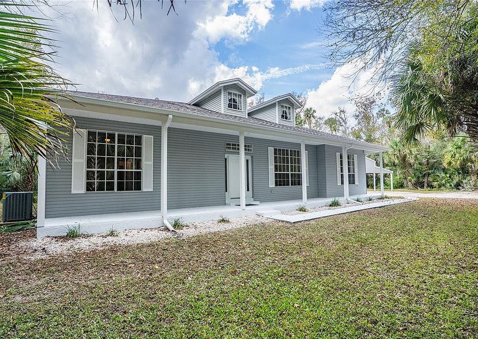 One or more photo(s) has been virtually staged. Discover the perfect blend of privacy, comfort, and refined Florida living at this exceptional 3-bedroom, 2-bath residence set on 2.5 serene acres in the desirable New Smyrna Beach countryside. Encompassing 2,960 sq ft of thoughtfully designed living space, this pool home offers an inviting retreat with room to relax, entertain, and savor the beauty of its natural surroundings. Recently refreshed with new exterior paint (2025) and enhanced by a new pool pump (2025) and new flooring throughout, the home exudes a crisp, modern feel. A newer roof (2016) offers peace of mind, while the expansive 4-car garage and 3-car carport ensure abundant parking and storage options. At the heart of the home, the newly upgraded kitchen is a showpiece of style and functionality—featuring stainless steel appliances, a farmhouse sink, a charming custom pantry door, a brand-new island, tiled backsplash, and upgraded lighting that beautifully illuminates the space. The adjoining living area is warm and welcoming, centered around a contemporary electric fireplace. The primary suite is a true sanctuary, complete with a cozy wood-burning fireplace, a generous walk-in closet, and a beautifully updated ensuite bath showcasing dual vanities and a spacious walk-in shower. A split floor plan provides privacy for guests, offering two additional bedrooms and a well-appointed full bath. A versatile bonus room and loft open the door to endless possibilities—ideal for a game room, art studio, home office, or creative retreat. Outdoors, a sweeping screen-enclosed lanai with grilling area overlooks the sparkling pool and tranquil, tree-lined yard, creating the perfect setting for morning coffee, weekend gatherings, or quiet evenings under the stars. With its thoughtful upgrades, generous living spaces, and idyllic acreage, this exceptional property offers the best of peaceful country living just minutes from New Smyrna Beach’s vibrant coastal lifestyle. Welcome home to 760 Trophy Hunter Trail—a place where comfort, elegance, and privacy come together in perfect harmony.