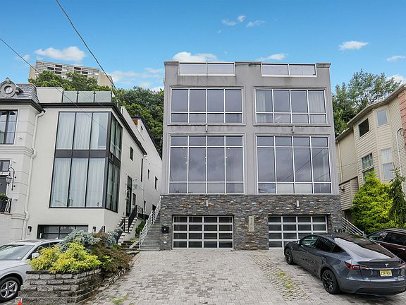 Designed for effortless entertaining, this home offers a comfortable, practical, and stylish environment with premium details throughout. The expansive open-concept first floor features a welcoming living room with a fireplace, a dedicated dining area, and an oversized modern kitchen equipped with state-of-the-art appliances and a convenient breakfast nook. Step directly from the kitchen onto a beautifully landscaped patio, perfect for outdoor gatherings. The second floor provides a spacious master bedroom with en-suite facilities, along with two additional bedrooms and a full bath. The versatile ground level includes a fourth bedroom that can easily serve as a gym or media room, a full bath, and a two-car garage. Ascend to the rooftop deck for a private oasis, ideal for relaxation, fun, and contemplation while enjoying breathtaking panoramic views of the NYC skyline and the river. This exceptional home boasts a prime location, close to GW School and just one block from both the NYC bus stop and the Edgewater Ferry shuttle.