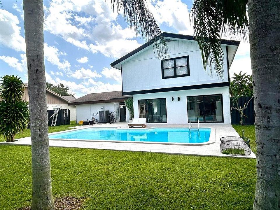 **SEASONAL RENTAL** Fully furnished. Beautifully renovated 3 Bed, 2.5 bath, 2 Car Garage Pool home in Wellington. This home has been upgraded with modern elegance featuring an open concept floor plan with brand new flooring throughout. Upgraded kitchen with marble countertops that extend into a large island for extra cooking space and entertaining. A walk-in pantry has built-in shelves. The formal dining area has a wood burning fireplace. Upstairs, the primary bedroom features an extended layout with a large separate sitting area that can be used as a den, nursery or private home office, and an en-suite bathroom with modern luxurious fixtures. Spacious corner lot (.22 acres) with in-ground pool and fenced yard for added privacy and security. Lawncare, Pool, Cable, Wifi included in rent.